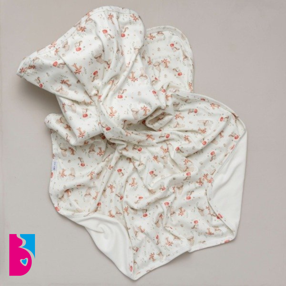- Manta de doble algodón: Estampado de un lado, blanco del otro. 100% algodón pima. 0,85 x 0,85 cm.
