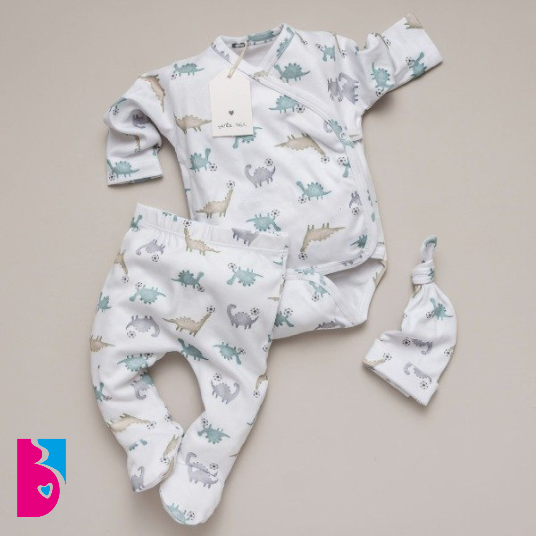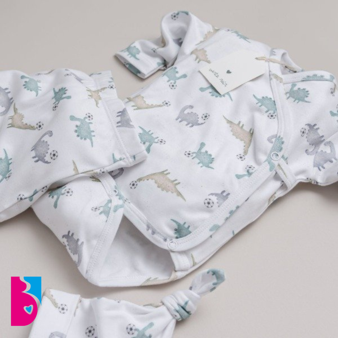 Mini ajuar 3 PIEZAS, diseñado especialmente para recibir a tu bebito en camino. Este conjunto incluye tres piezas esenciales: