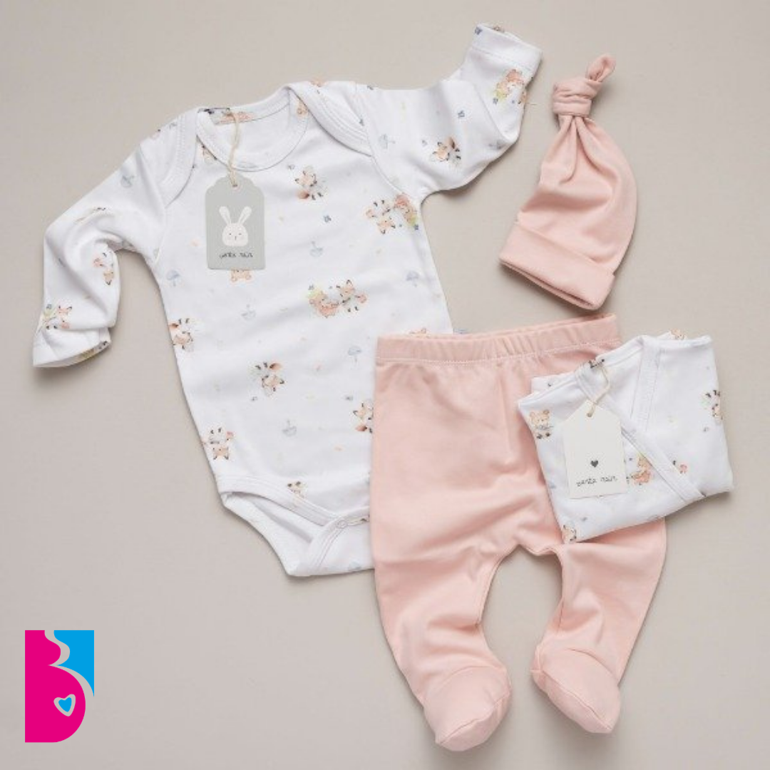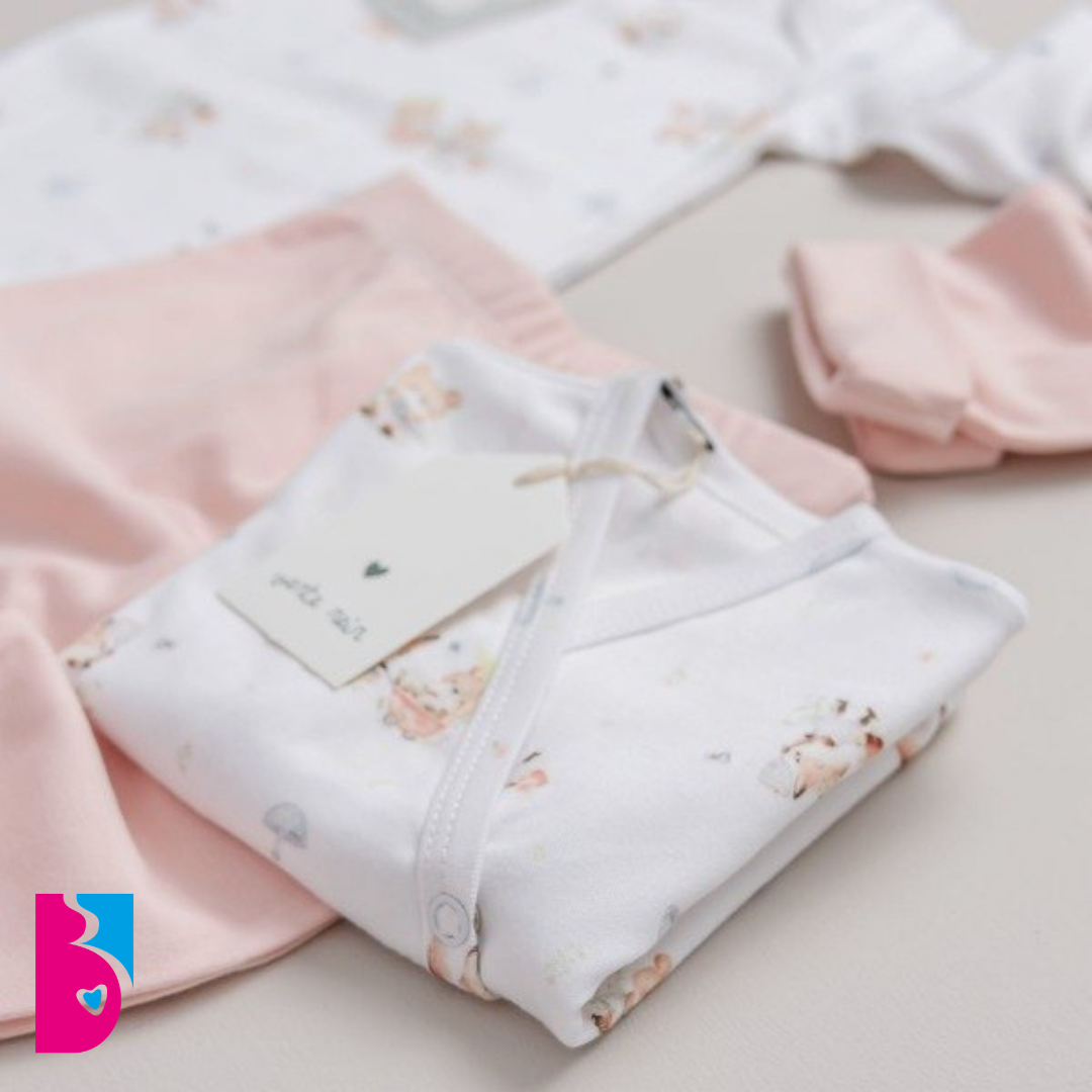 Nuestro ajuarcito de 4 piezas 100% algodón es una opción ideal para armar las primeras muditas para la clínica.