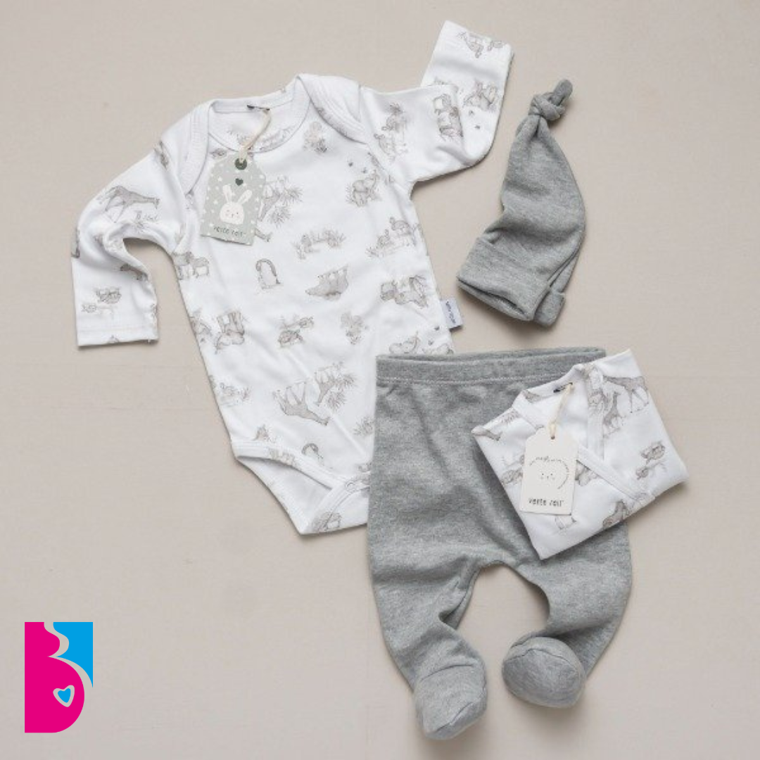 Nuestro ajuarcito de 4 piezas 100% algodón es una opción ideal para armar las primeras muditas para la clínica.
