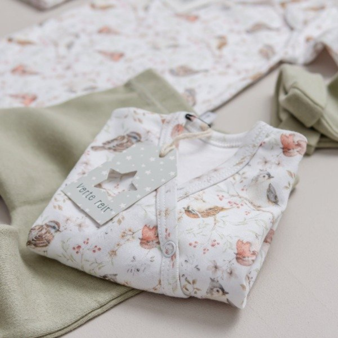 Nuestro ajuarcito de 4 piezas 100% algodón es una opción ideal para armar las primeras muditas para la clínica.
