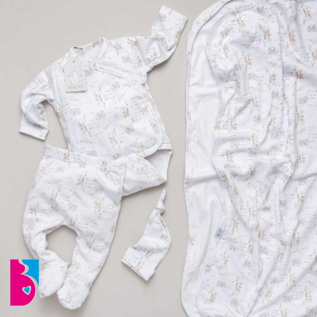 Descubre éste ajuar de recibimiento de 5 piezas , soñado, que decidimos llamar INTI, pensado para los primeros días de tu bebé. Este conjunto es perfecto para asegurar confort y suavidad, gracias a su confección en 100% algodón pima. Cada pieza está diseñada para proteger la delicada piel de tu pequeño mientras le brinda la comodidad que necesita.