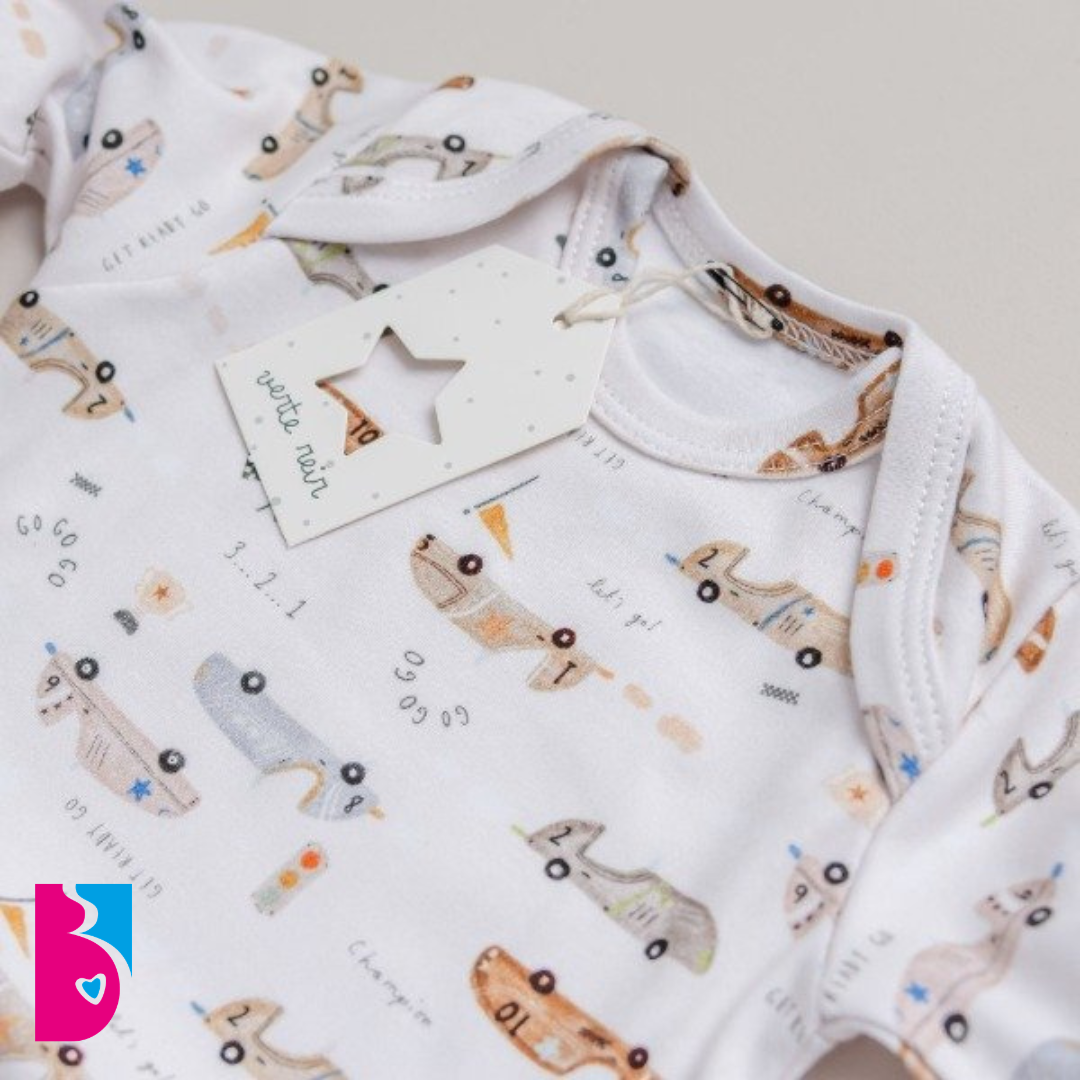 - Body manga larga: Con cuello americano y confeccionado en 100% algodón peinado estampado, de excelente calidad y súper y cómodo para la delicada piel de tu bebé.