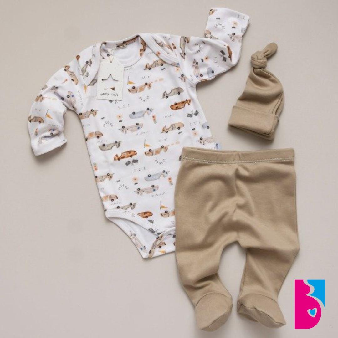 - Gorrito con nudo: El ajuarcito se completa con este gorrito de 100% algodón peinado, en el mismo tono liso, ideal para proteger la cabecita de tu pequeño.