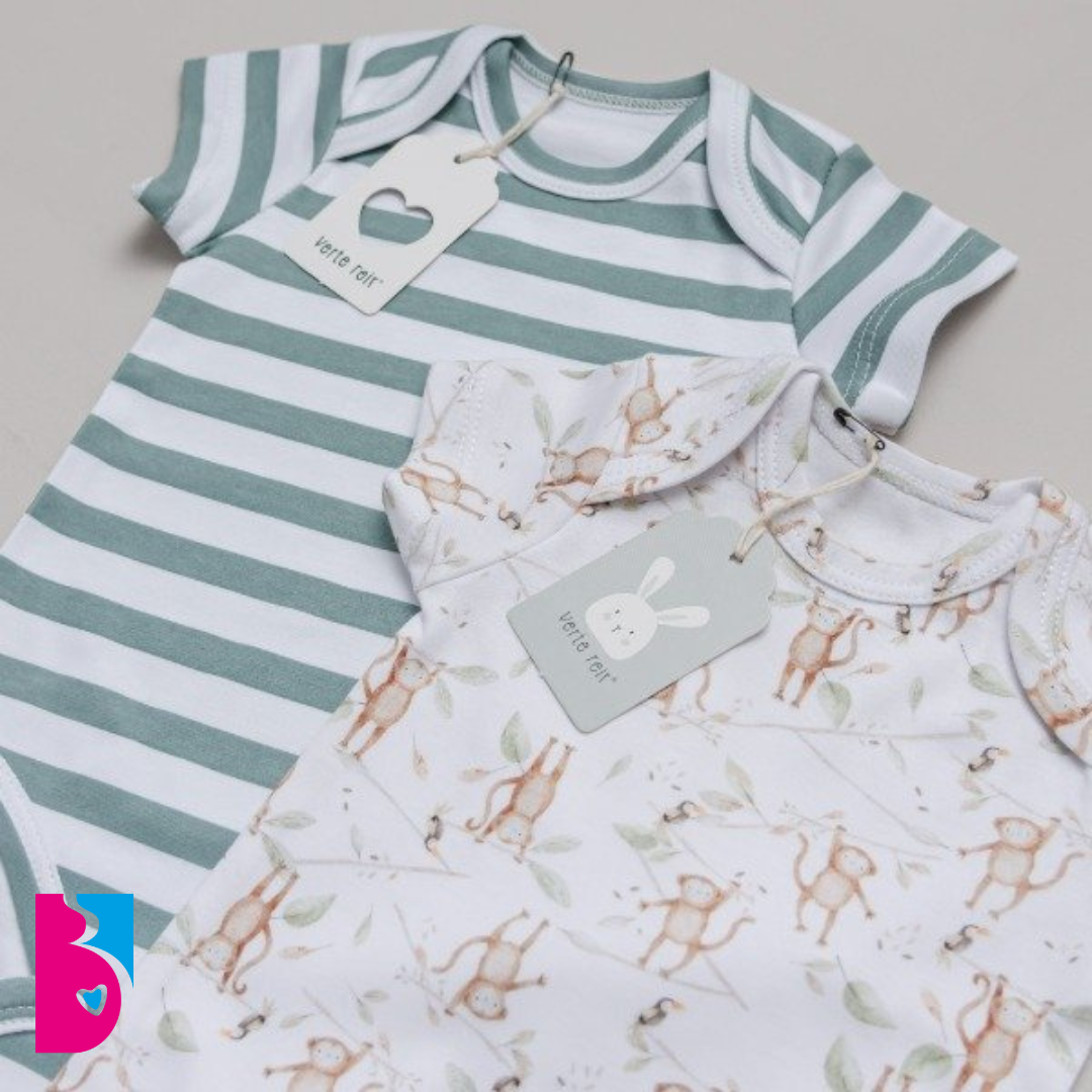 Descubre la comodidad y estilo de nuestro Bi Pack de bodys mangas cortas ambos confeccionados en algodón pima estampado, 100%, que con su práctico cuello americano facilita el cambio de ropita, convirtiéndolos en una opción sumamente funcional.