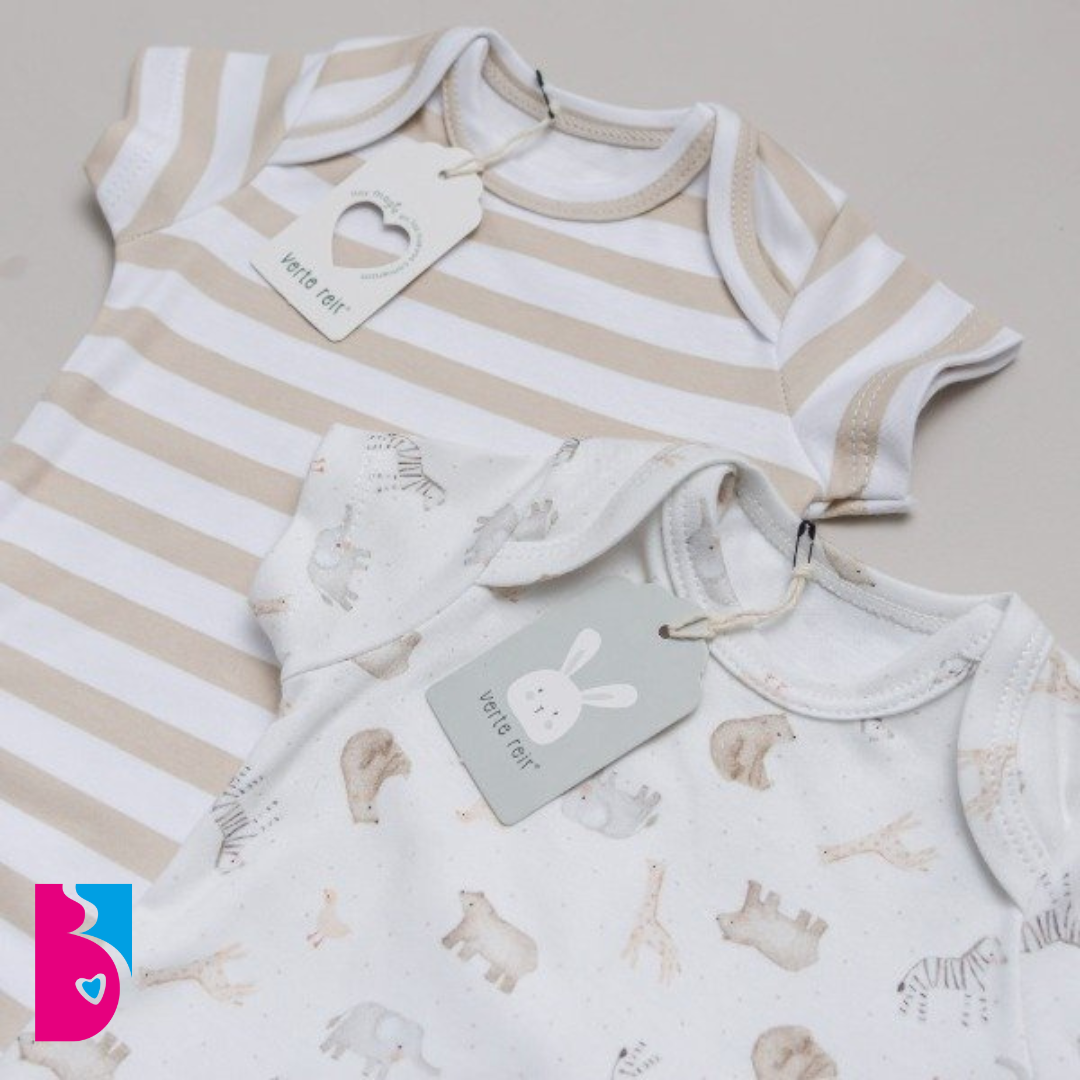 Bi Pack Bodys Mangas Cortas TIERRA Rayitas beige y Animalitos