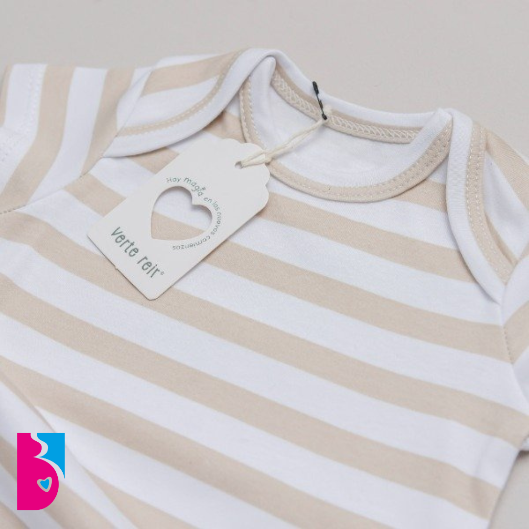 - Body 1: Confeccionado en 100% algodón pima estampa rayitas beige.