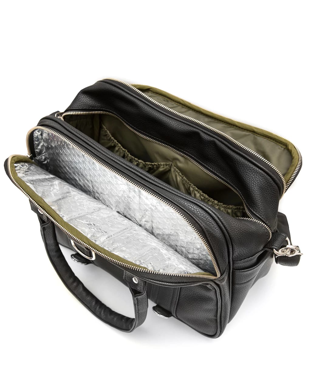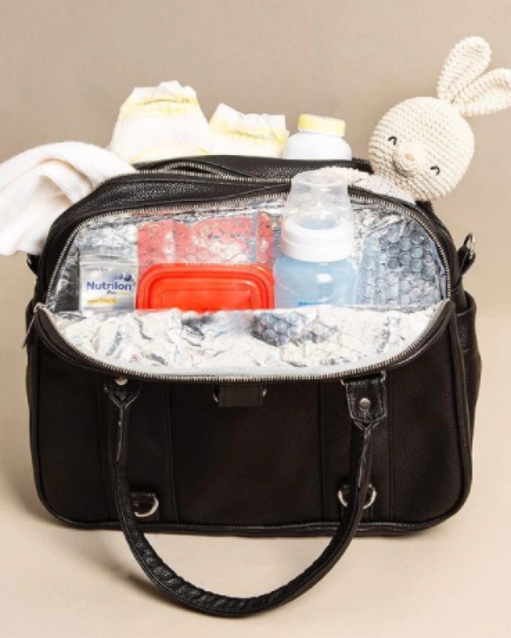 Cartera Maternal Mía Glow Negra para mamás. De cuero ecológico de primera calidad
